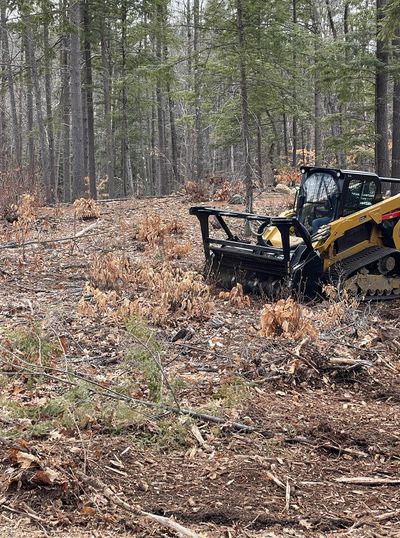 In your backyard, where bushes, vines and wheeds have taken over, a forestry mulcher can create. a beautiful blank canvas to seed a lawn and create a usable space to hang out or play in.